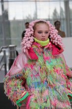 Присутствующих представителей сильной половины человечества особенно покорила модель в прозрачном платье, выполненном то ли из материала, который используют при изготовлении подъюбников, то ли из ткани, предназначенной для пошива занавесок.