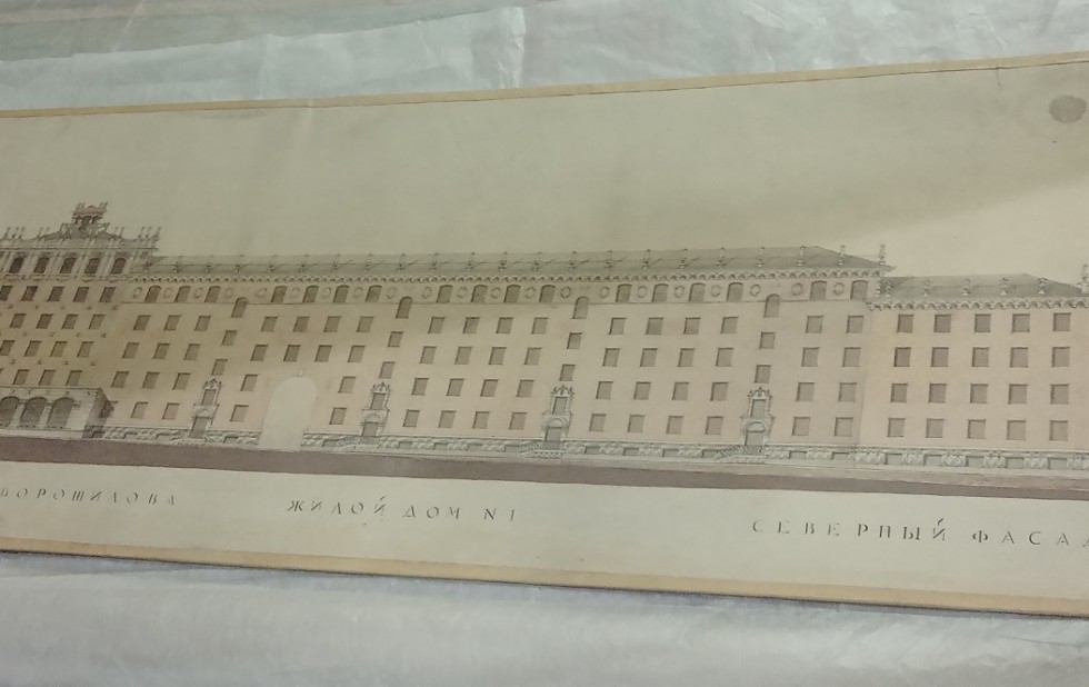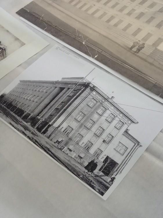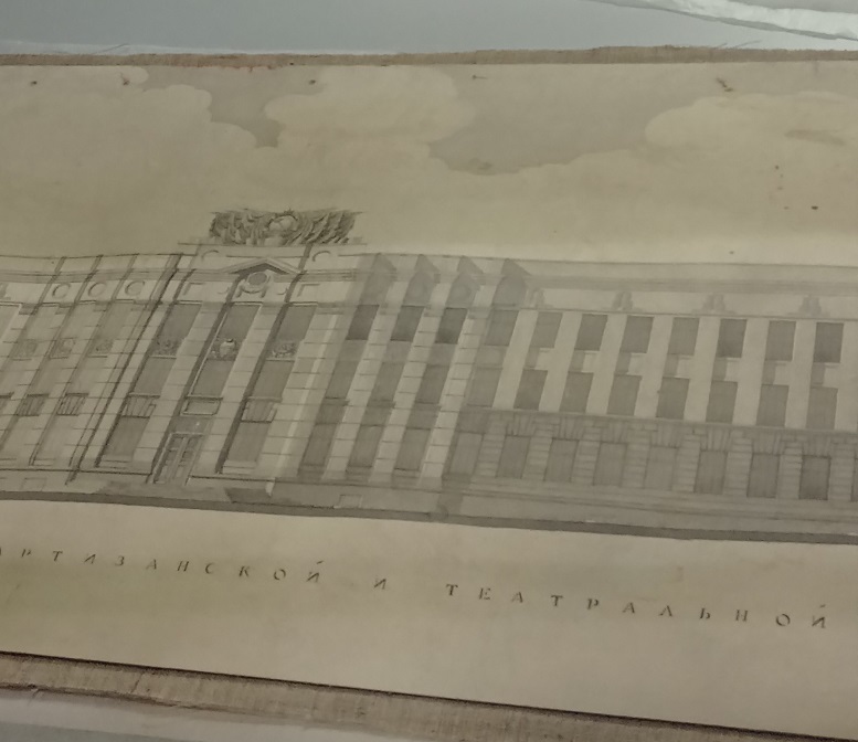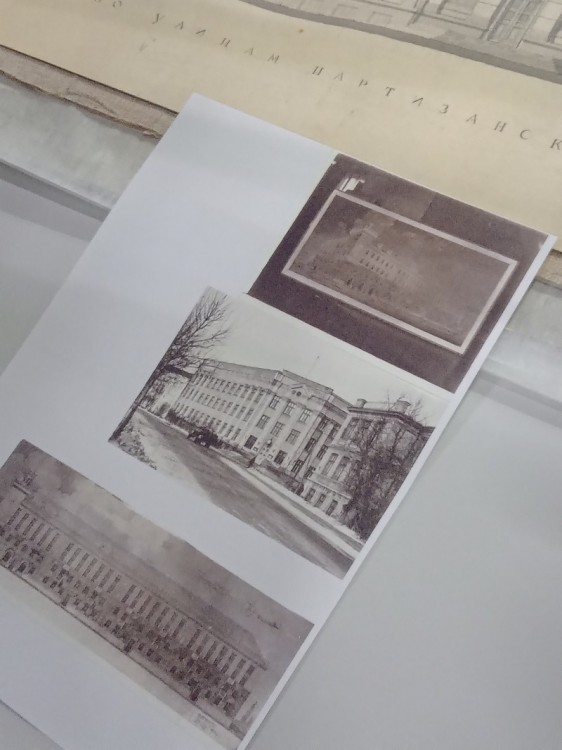 Реализованный проект середины 50-х годов прошлого века (на фото внизу). Первоначально его проектировали под управлением исправительными учреждениями региона. Но в итоге отдали под офтальмологическую больницу на улице Лермонтова. Правда, проект сделали менее помпезным.