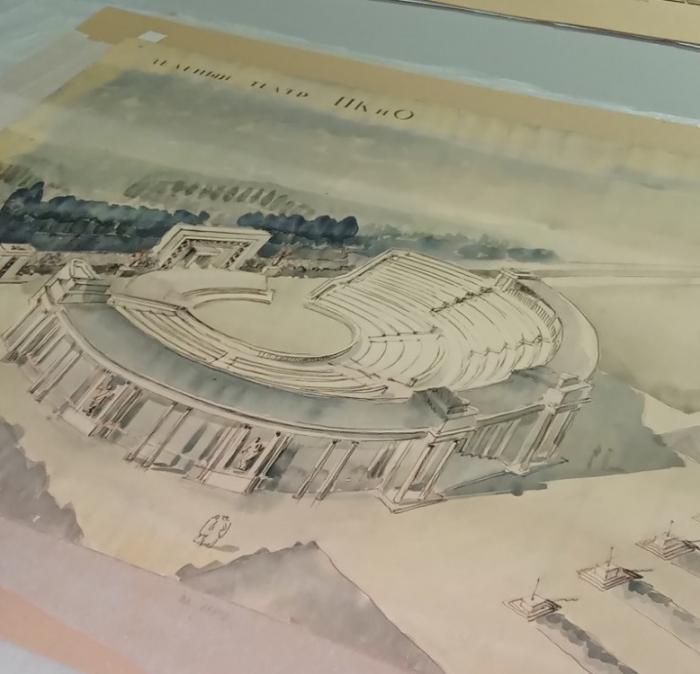Постхудпромовский период. Проект Зеленого театра в одном из омских парков. Проект был создан в трех вариантах. Но ни один из них не воплотили.
