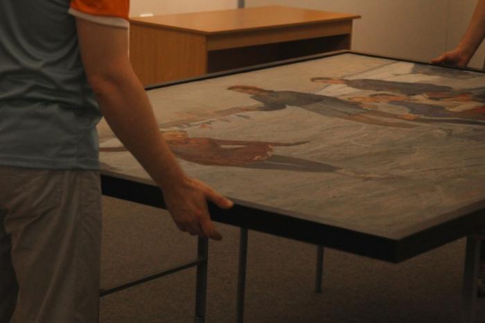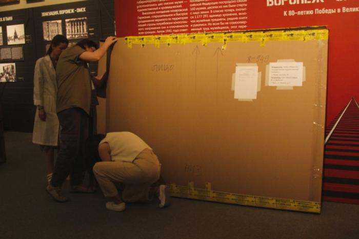 Прессу пригласили принять участие в распаковке первой из прибывших иногородних картин.