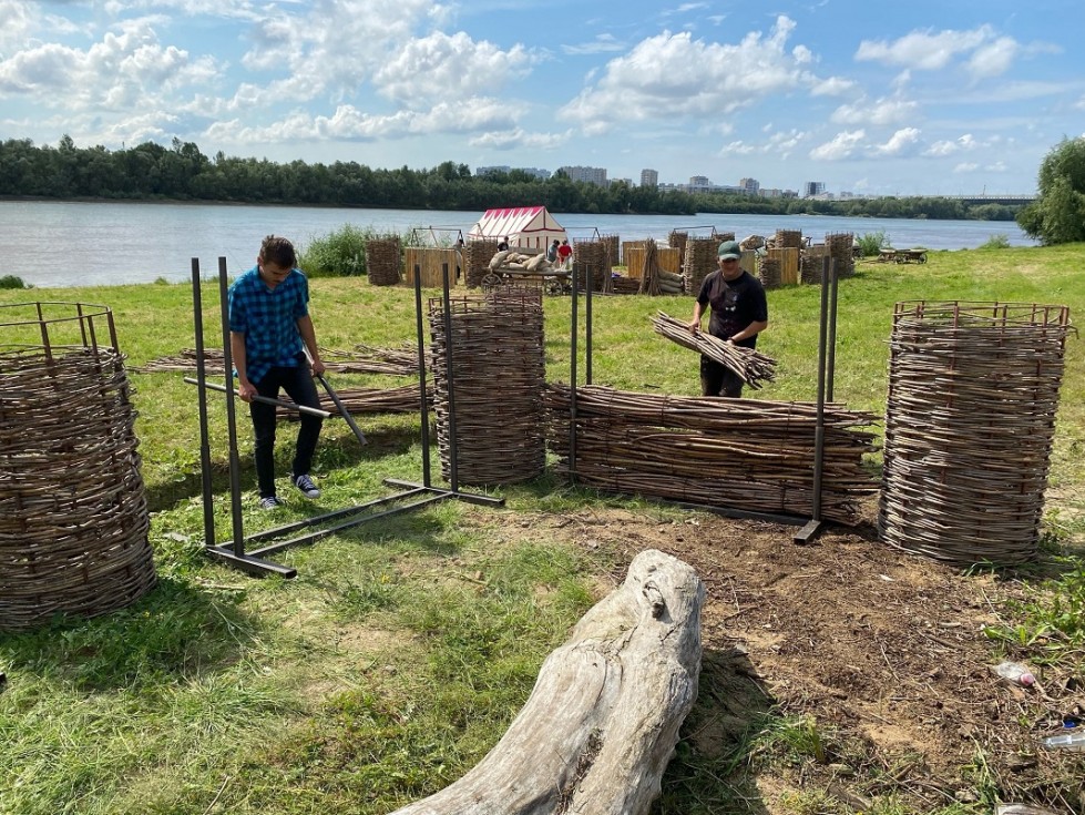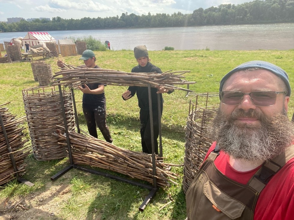 Василий Минин, директор Омской крепости на фоне возводимой площадки для военно-исторической постановки. Фото со страницы вк "Омская крепость\Экскурсии".
