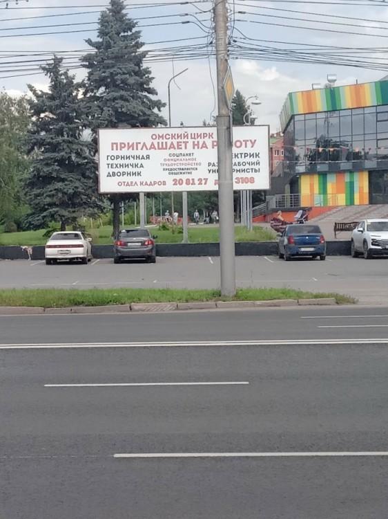 Омский цирк все больше закрыт. А на баннере, который установлен прямо возле проспекта Маркса, перечислены вакансии учреждения. В основном, техперсонала.