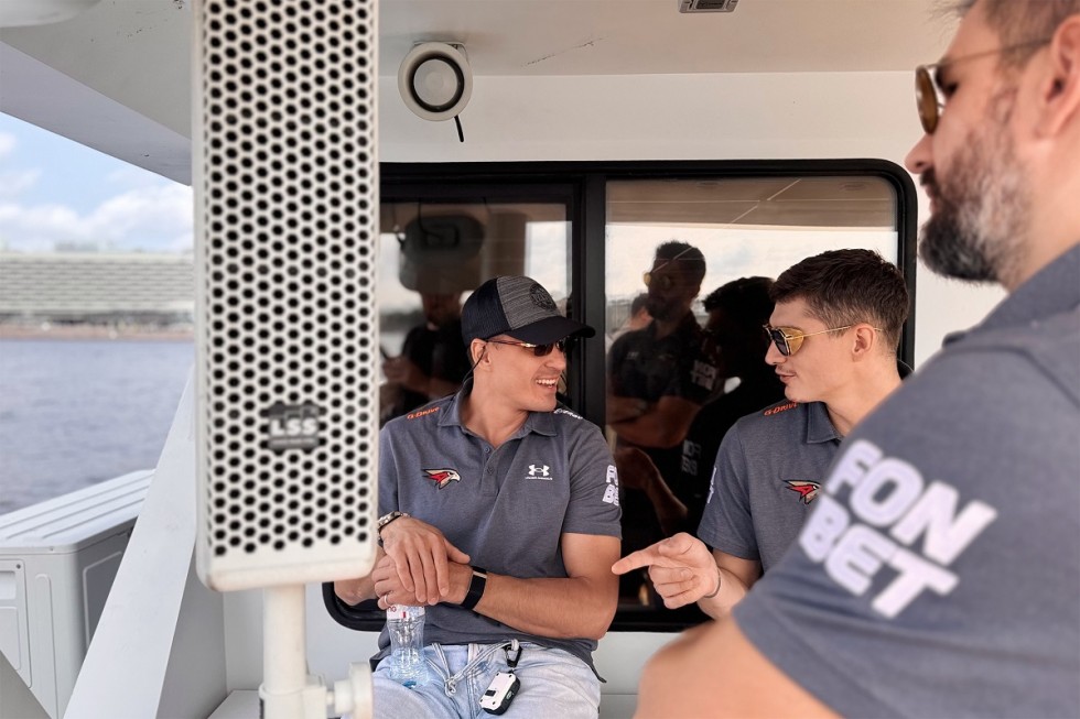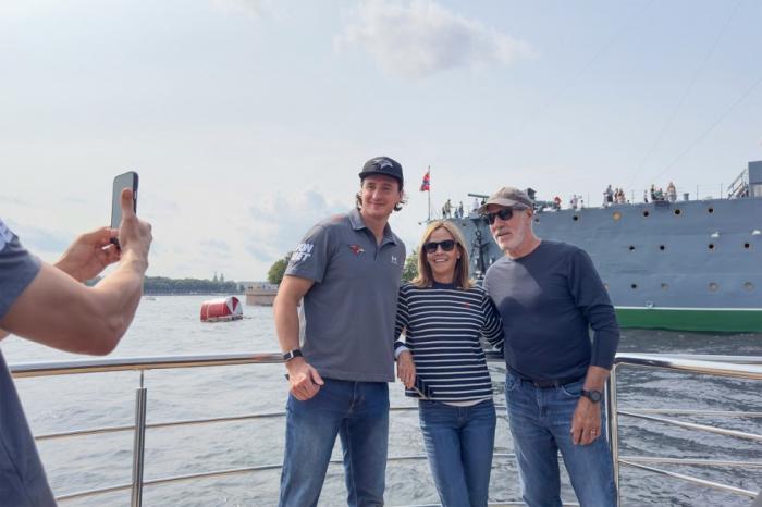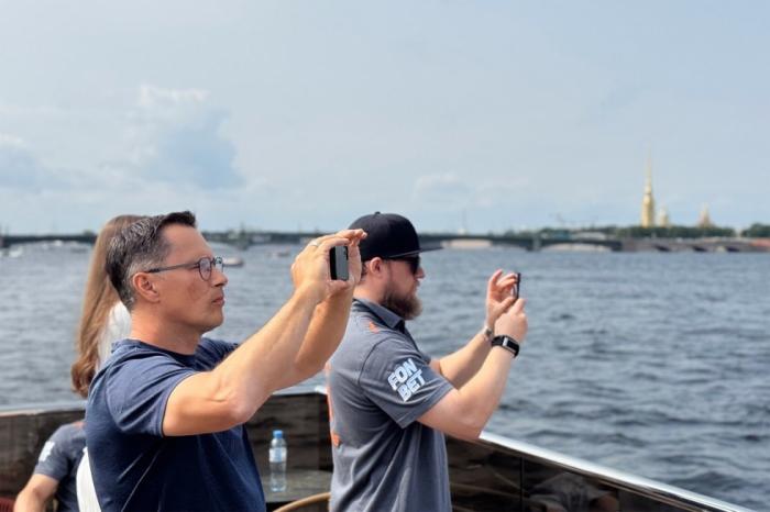 Ги Буше с игроками любуется городом на Неве. Фото останутся на память.