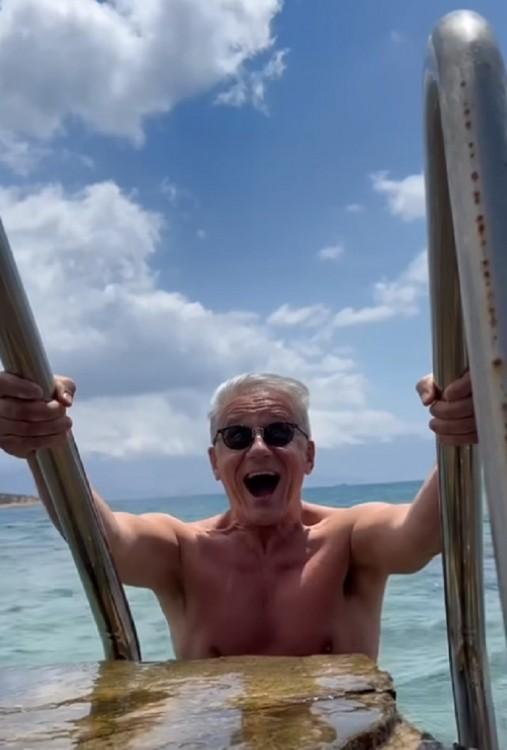 Но МС2 больше заинтересовал необычный look звезды оскароносного фильма Михалкова "Утомленные солнцем". На снимке он предстает в сером свободном свитшоте и широченных брюках-кюлотах, которые на фото больше напоминают юбку. Довершают образ пляжные тапочки.