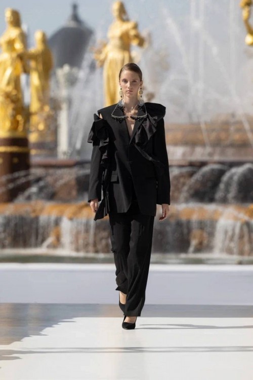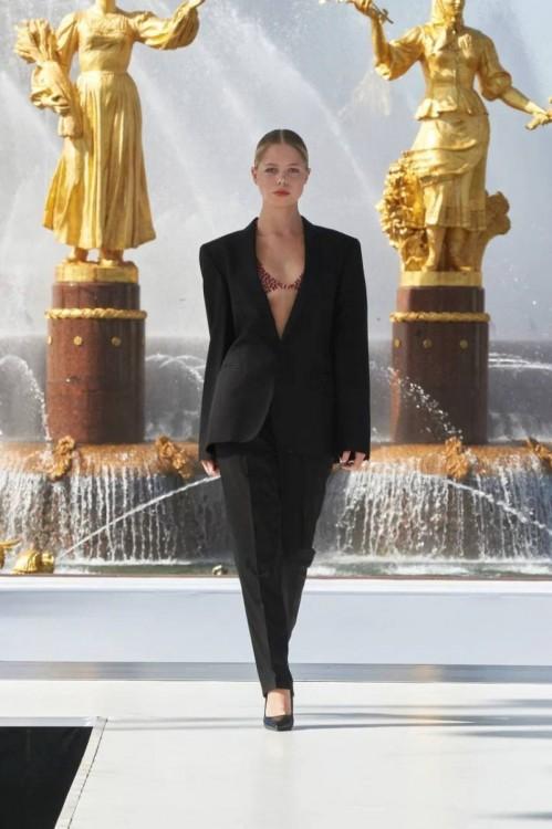 Была там и омичка Екатерина Богданова, презентовавшая коллекцию «Переосмыслить». Показ ее бренда Katler проходил на ВДНХ в обрамлении бьющих советских фонтанов, отливающих на солнце золотом.