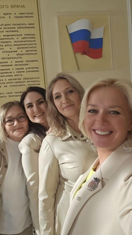 Подруги ее поддержали. Погода радует омичей теплыми днями и потому именно такая гамма прекрасно оттеняла моложавость эскулапов 20-летней выдержки. А именно столько написано на торте, испеченном к встрече.