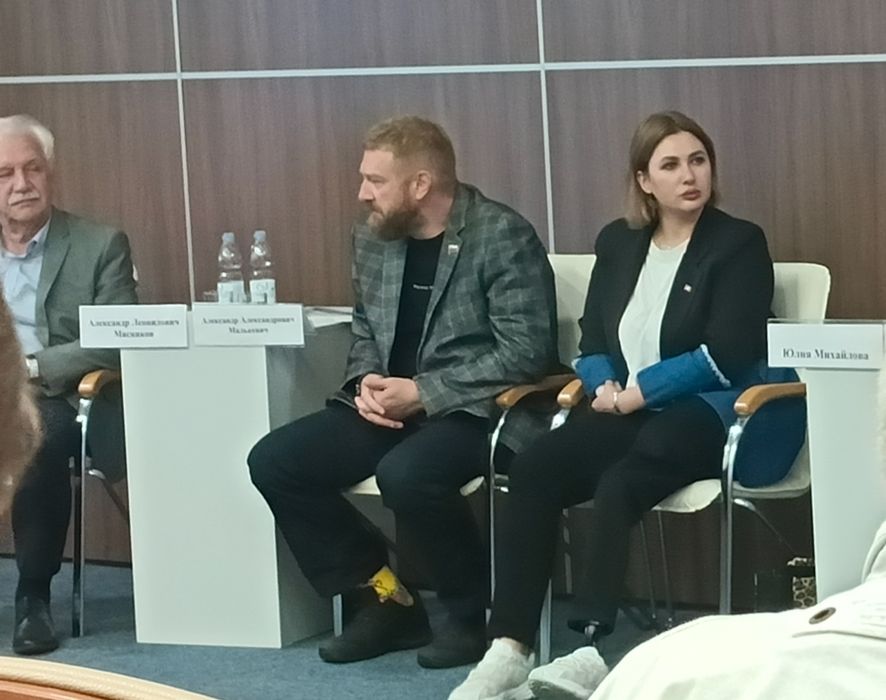 На дискуссии - ее принимал Санкт-Петербургский музейно-выставочный центр «Россия-моя история», Малькевич представил журналистку с новых территорий Юлию Михайлову. Девушка потеряла ногу при военных действиях. Ее выступление называлось "Умерла и родилась заново".