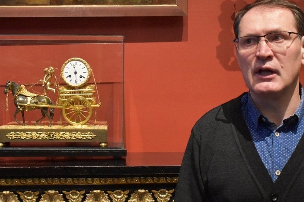 «Но в экземпляре Эрмитажа тоже значительные утраты. Если фигура Вакха там присутствует, то например бочки с механизмом тоже нет. И, соответственно, фигурка собачки, которая выполняла роль маятника, там тоже отсутствует, как и у омичей.