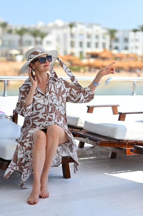 И гардероб для прощания она выбрала подходящий - платье-халат с крупным флоральным принтом, к которому в комплекте прилагались шляпа и педикюр.