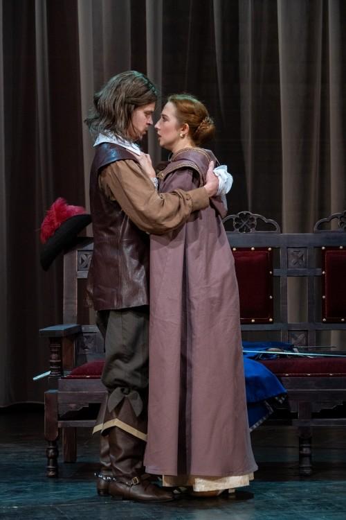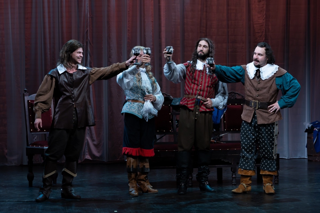 Однако на просмотре бросились в глаза технические минусы зала "Галерки". В сценах, которые проходили прямо возле публики, что называется глаза в глаза, реплики "съедались" и актеров было просто не слышно. У Василия Анохина, сыгравшего роль д`Артаньяна, довольно много витиеватого текста и чувствуется, что произносить его ему пока тяжеловато.