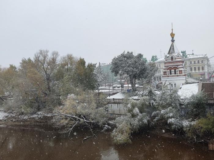 Отметил снег и актер нижегородцев Игорь Смеловский. На его странице целый фоторепортаж о погодном событии, столь поразившем лицедеев из старинного Нижнего Новгорода.
