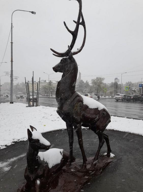 " Омск приветствовал нас снегом! Он шёл весь день, засыпал все дороги, деревья и кусты стояли в снежных шапках, а к вечеру образовались уже настоящие сугробы!