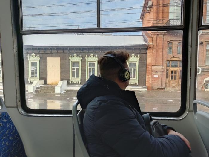 Зам директора театра "Комедiя" Артем Николаев во время трамвайной экскурсии по омской улице Жукова