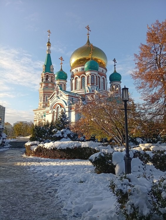 " Омск приветствовал нас снегом! Он шёл весь день, засыпал все дороги, деревья и кусты стояли в снежных шапках, а к вечеру образовались уже настоящие сугробы!