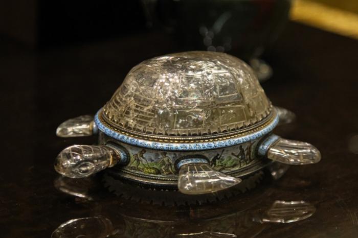 Знаменитые на весь мир скифские украшения с животными, напомним, занимают далеко не самую большую часть "Золотой кладовую". Видное место отдано изделиям фирмы Фаберже, поставившим "ювелирку" буквально на поток. Ну, на сколько это было возможно в условиях XIX -начала XX веков.