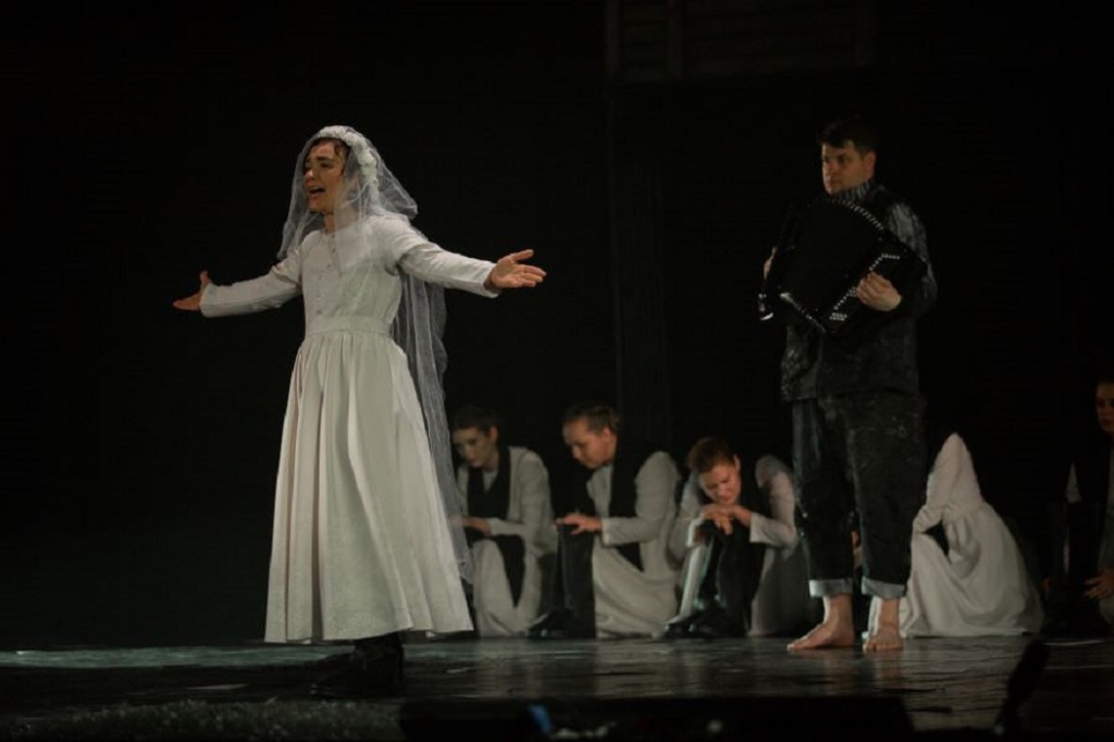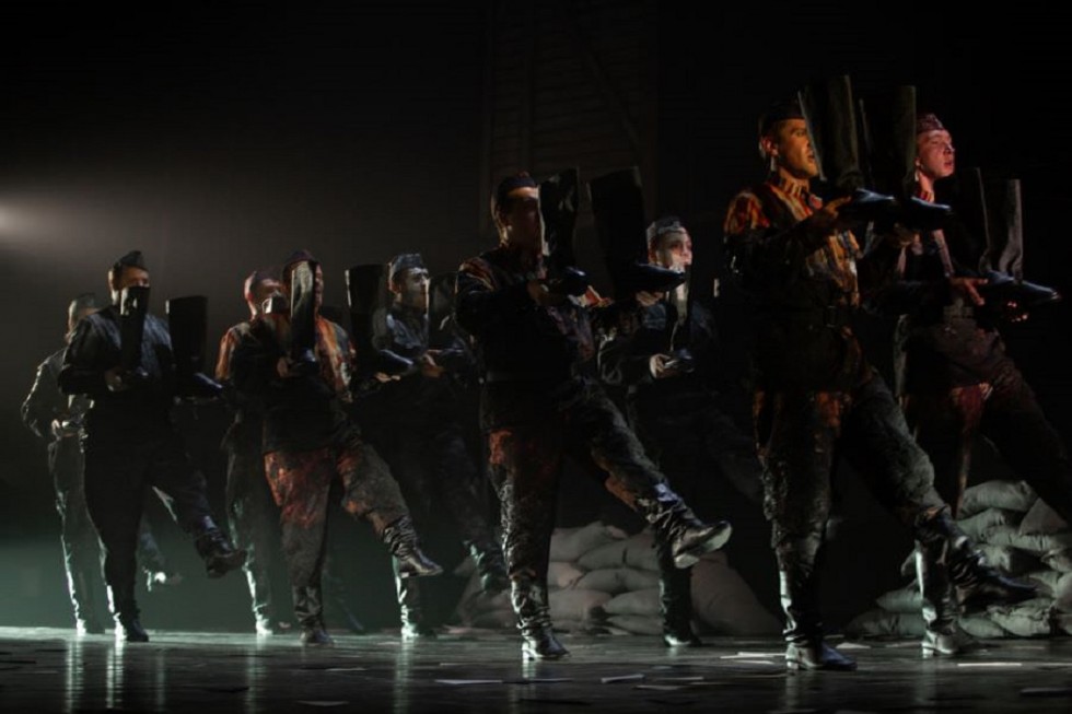 Премьера спектакля прошла 8 мая. Постановка, как презентуют ее сами тюзовцы, сплетена из военных песен разных лет.