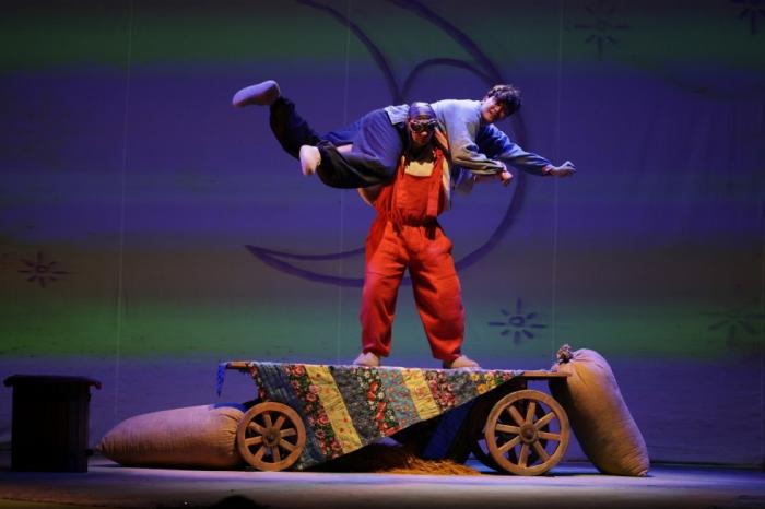 Открытие спектакля: актер Никита Лукьянов, исполняющий роль Ивана-дурака.