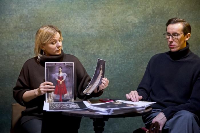Судя по фотографиям, размещенным там же, Столбовская и второй режиссер Александр Браун не только озвучили кастинг, назвав имена задействованных актеров, но и презентовали им эскизы костюмов, а также оформления сценического пространства.