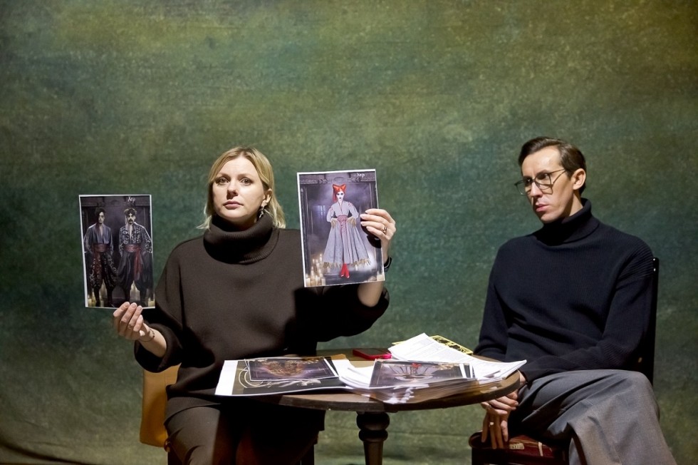 Судя по фотографиям, размещенным там же, Столбовская и второй режиссер Александр Браун не только озвучили кастинг, назвав имена задействованных актеров, но и презентовали им эскизы костюмов, а также оформления сценического пространства.