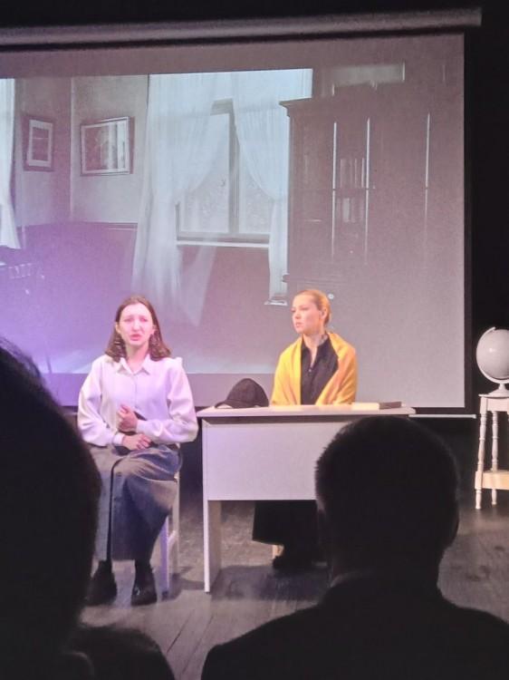 И надо отдать должное, с этой областью в спектакле московского режиссера Сергея Батаева все отлично. Прежде всего стараниями опытной Натальи Виташевской, которая легко перевоплощается из образа строгой училки в саму Анну Ахматова, практически не используя для этого никаких внешних аксессуаров.