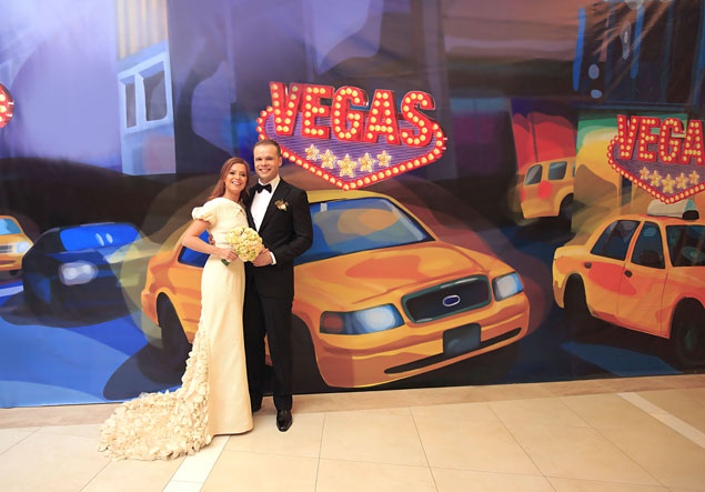 Для друзей и коллег молодожены организовали торжество в ресторане Vegas . Было около 400 гостей. Юлию и Александра поздравили Иосиф Кобзон, звезда проекта «Голос» Наргиз, Глюкоза, Анфиса Чехова с мужем, Ирина Слуцкая, певица Наташа Королева с мамой и многие другие. Ведущей свадьбы стала Лера Кудрявцева, подруга невесты.