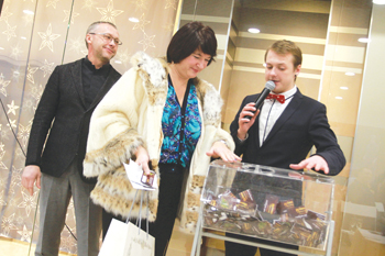 Между приятно волнительными минутами розыгрышей гости наслаждались праздничным фуршетом, музыкой и развлекательной программой: несколько магазинов провели показы своих новых коллекций - НИАГАРА, TRU TRUSSARDI, GALINA PODZOLKO, SOLANGE, PERFETTO, BGD BOGDANOV. Последний открылся месяц назад, а подарки раздавал сам автор модного собрания.